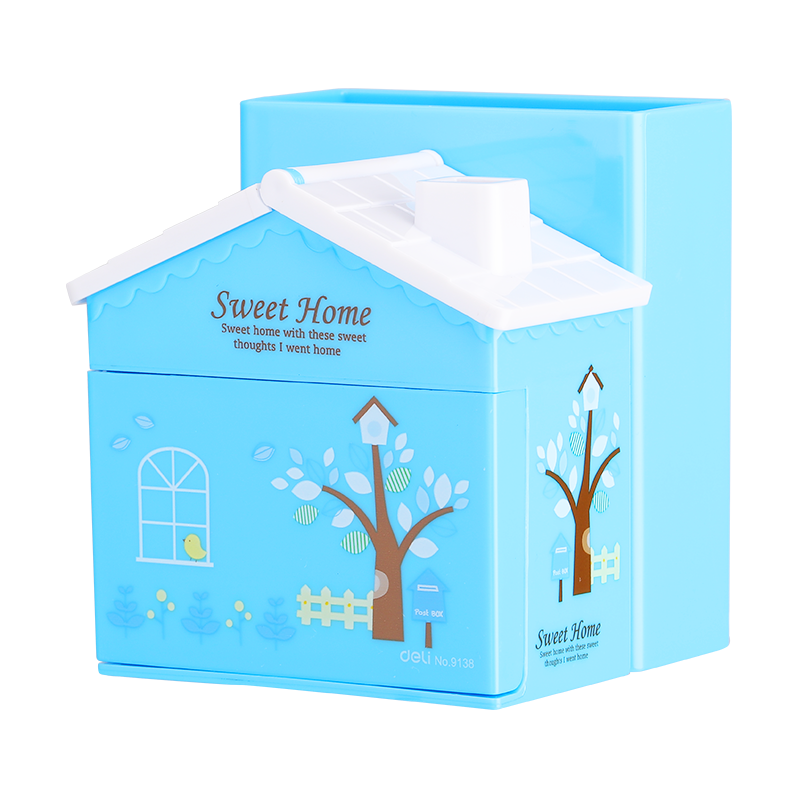 E9138 PS House Desk Organizer 3 Comp. Pink Blue
